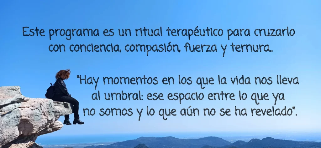 “Hay momentos en los que la vida nos lleva al umbral: ese espacio entre lo que ya no somos y lo que aún no se ha revelado. Este programa es un ritual terapéutico para cruzarlo con conciencia, compasión, fuerza y ternura.”